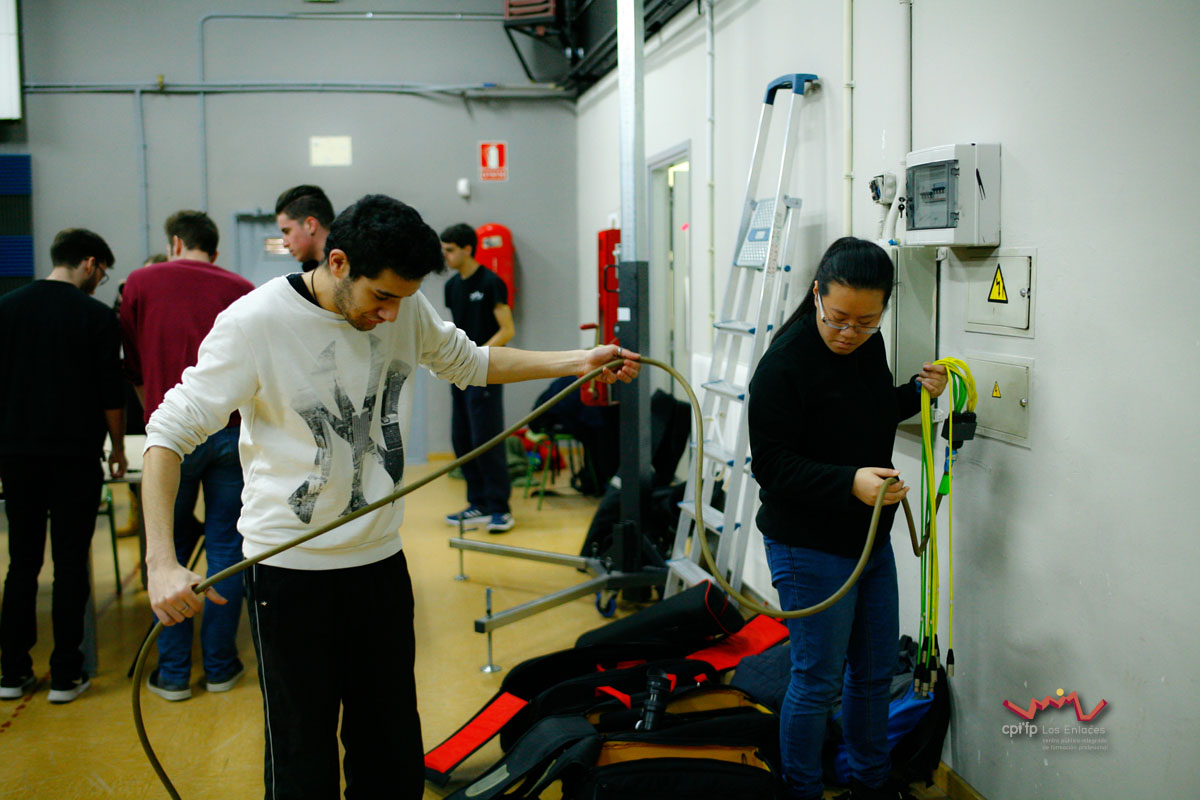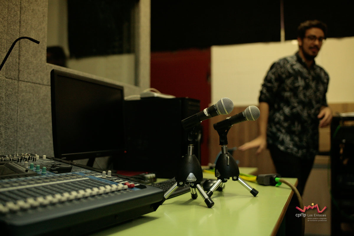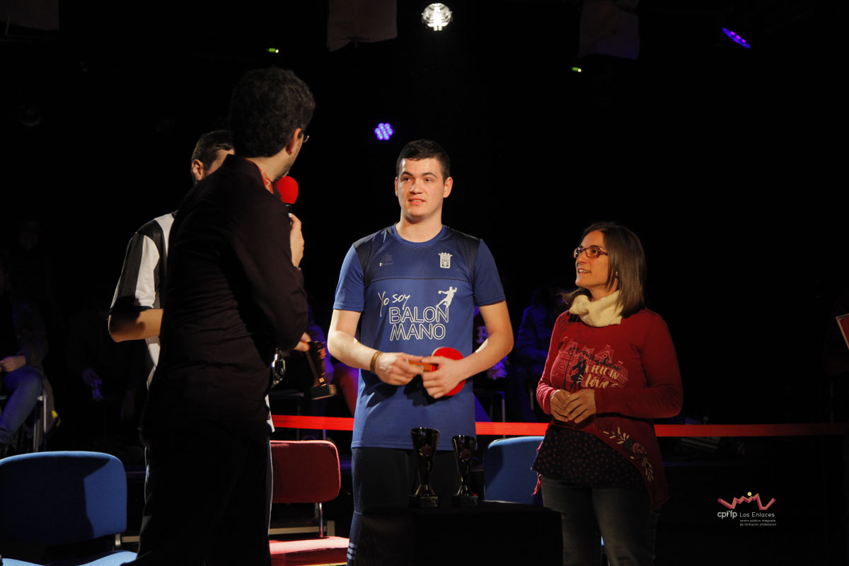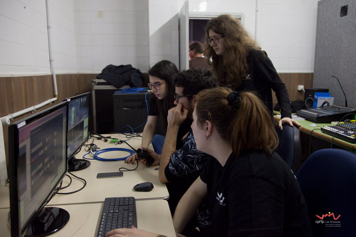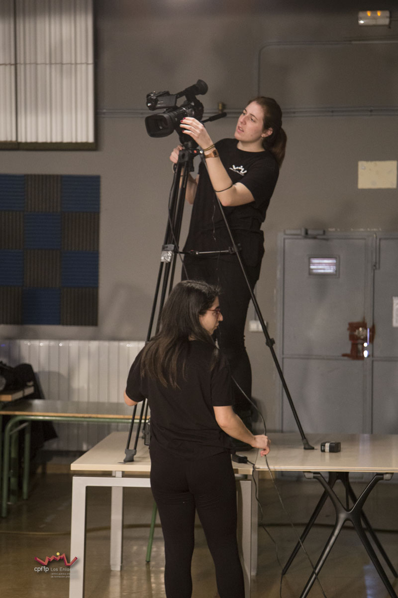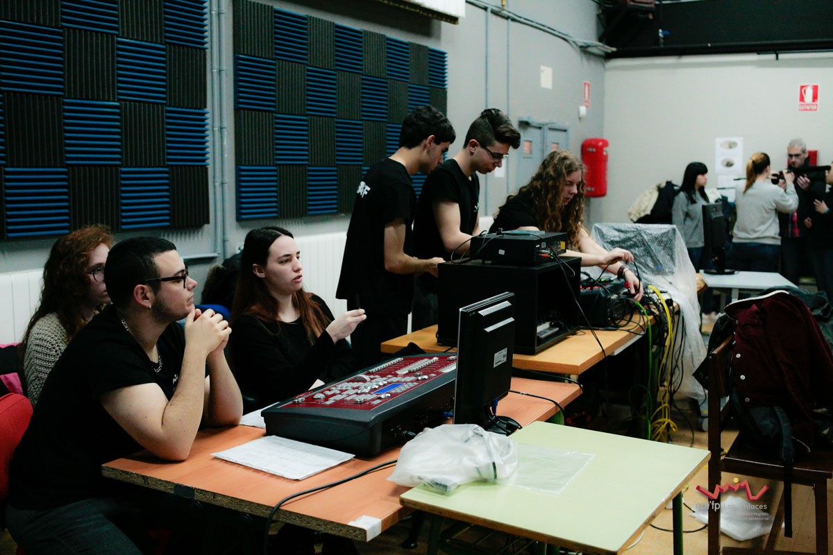 En esta ocasión hemos contado con alumnos de los ciclos de 1º de Realización, 1º de Iluminación, 1º y 2º de Video-DJ, así como con algunos de sus profesores que a lo largo de la mañana del día 14 de marzo, en apenas tres horas, han conseguido montar las luces, las cámaras, la microfonía y todo lo necesario para realizar una realización multicámara de la final, la cual se jugó durante el recreo con comentaristas, público, árbitro, efectos de luces, retransmisión en directo por streaming y, por supuesto, los finalistas.